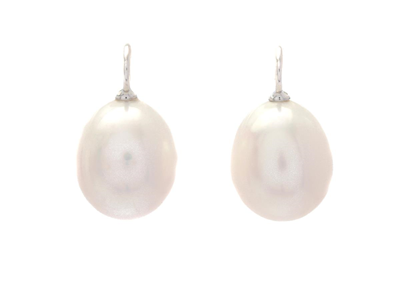 PÅHÄNGEN, 2 st, 18K vitguld ovala odlade sötvattenspärlor ca 10,2 mm, ögla 3 mm
