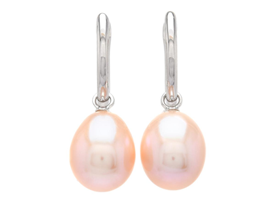 PÄRLÖRHÄNGEN, 18K vitguld, ovala odlade sötvattenspärlor ca 8,3 mm, avtagbara, stift, längd 22 mm, vikt 3,4 g.