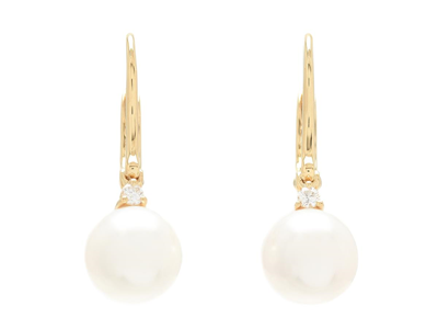 PÄRLÖRHÄNGEN, 18K guld, runda odlade sötvattenspärlor ca 8,4 mm, 2 briljantslipade diamanter ca 0,06 ctv, ca W/SI, stängbara krokar, längd 24 mm, vikt 3,3 g.