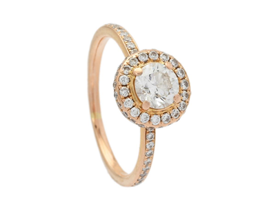 RING, 18K vitguld, briljantslipad diamant 1,08 ct, TW(F)/VVS1, De Beers Diamond Grading Report 010000275844. 30 briljantslipade diamanter ca 0,30 ctv, ca TW-W/VS, stl 17 mm, vikt 3,3 g.