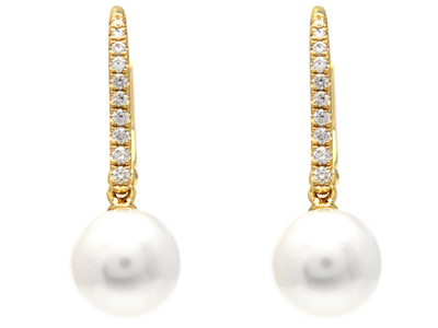 PÄRLÖRHÄNGEN, 18K vitguld, South Sea pärlor ca 9,6 mm, briljantslipade diamanter ca 0,11 ctv, ca W/SI, stift, vikt 3,7 g.
