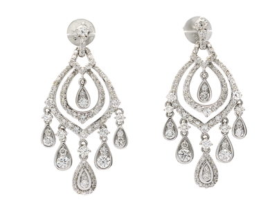 ÖRHÄNGEN, 18K vitguld med 126 briljanter 1,16 ctv TW-W/SI-P, stift, längd 3 cm.