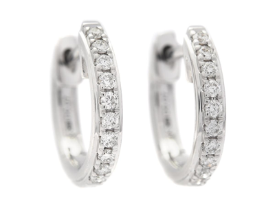ÖRHÄNGEN, 18K vitguld, bågar, åttkantslipade diamanter ca 0,06 ctv, stift, bredd 7,0 mm, vikt 0,6 g.