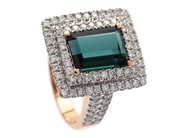 RING, 18K rosé/vitguld, blågrön turmalin 3,07 ct, briljanter 1,17 ctv, ca TW/VS, stl 17,25 mm, vikt 7,8 g.